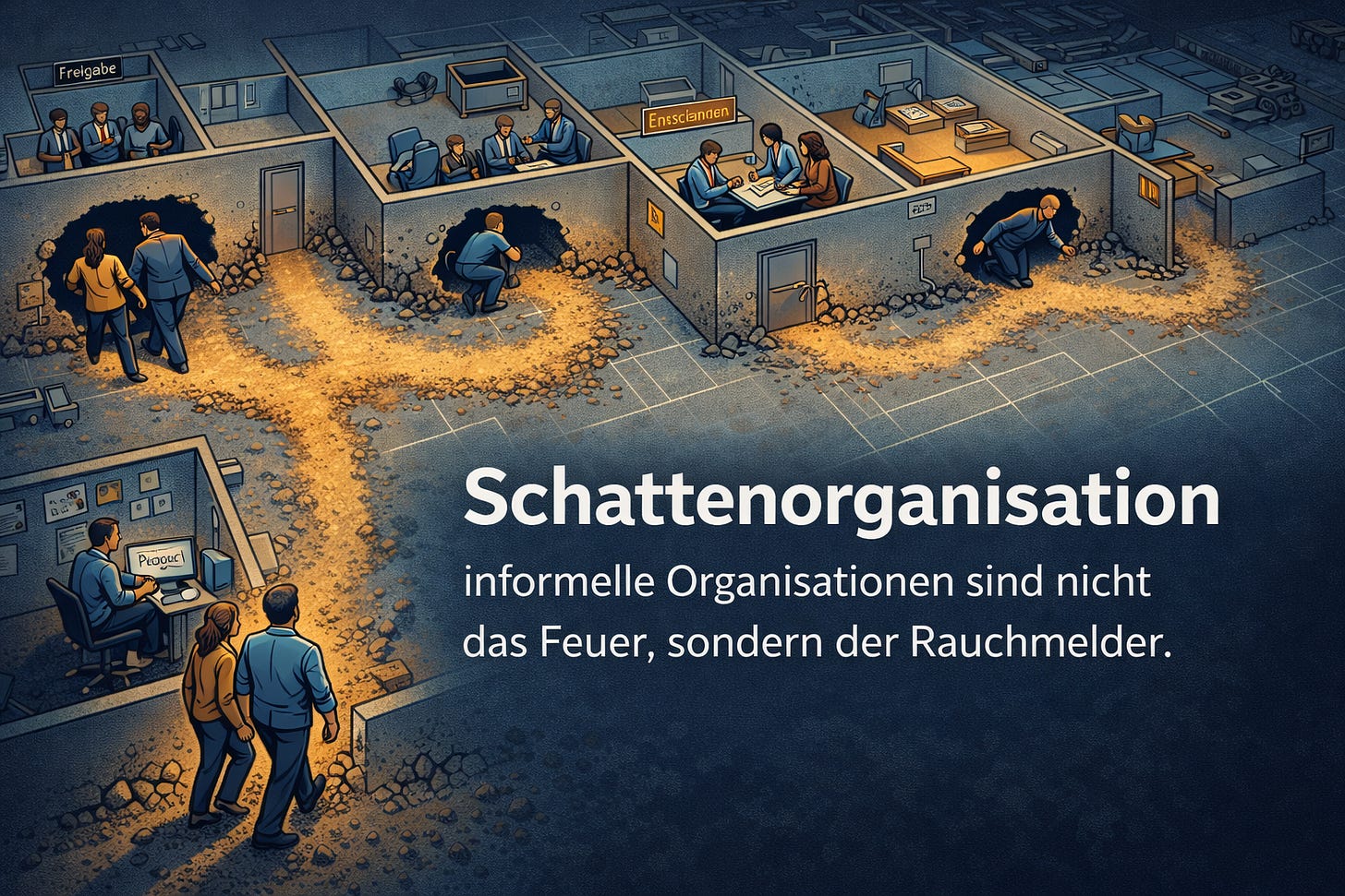 Denn informelle Netzwerke entstehen nicht, weil Menschen schlecht sind. Sie entstehen, weil Systeme Lücken haben – und Menschen diese Lücken schließen, damit es irgendwie weitergeht.